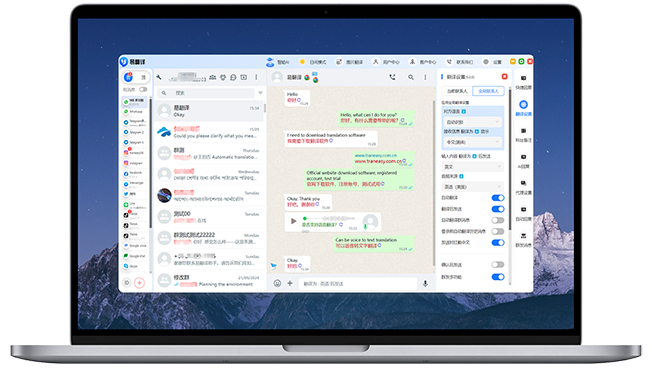支持全球主流社交通讯软件在线实时精准翻译(可多开)支持全球200+语种。